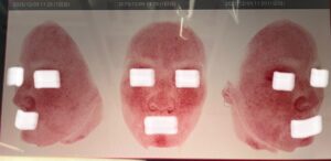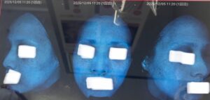 青色画像(uv写真)では、隠れたシミ・肝斑や潜在的なメラニンを写しています。
